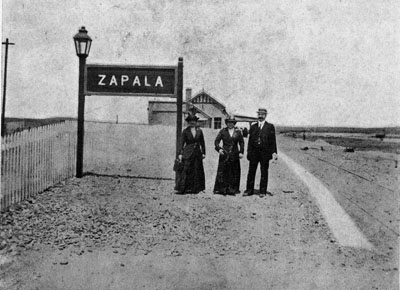 El día de inauguración en Zapala. Aunque fueron hechos muchos intentos para extender la líneas hacia el oeste y tras la frontera chilena, esperaría hasta hoy un pasajero intentado a viajar.