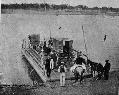 En 1910, todavía se explotaban las balsas, pero los vehículos han cambiado. Note el chofer con su kepí, sus anteojos protectoras y polainas de cuero. (0A)