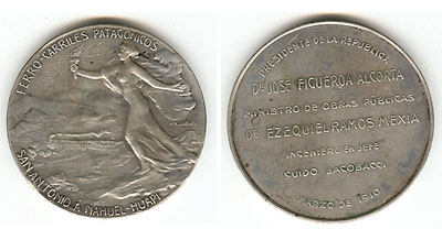 Anverso y reverso del medallón acuñado para conmemorar, presumiblemente, la inauguración de la construcción en 1910.