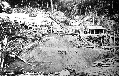 Mientras no se ve ninguna evidencia ferroviaria en la ilustración arriba, probablemente estaban carros mineros en la mina propia.
