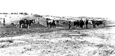 Dos fotografías de la colección del Museo Regional en Trelew muestran la construcción de unos terraplenes.