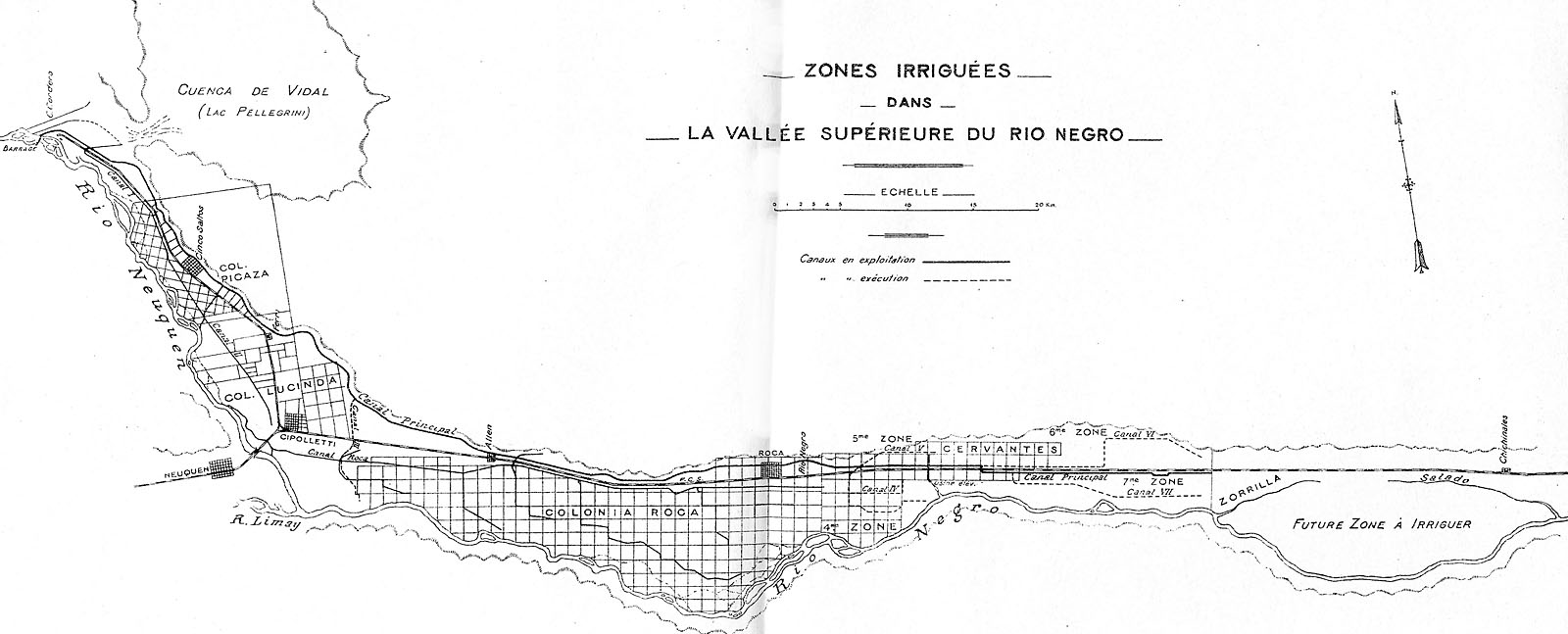 FuenteSe publicó originalmente el mapa en Le Barrage de Neuquen, et les irrigations dans la vallée du Rio Negro. 1919. F. A. Soldano. Imprimerie Coni, Buenos Aires.Publicado algo raramente en francés.