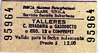 El boleto arriba es un boleto de empleados para un viaje de ida y vuelta entre los Talleres y el Kilómetro 27 o 31.