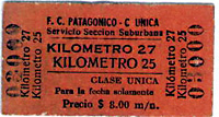 Los dos primeros boletos mostrados aquí son para la Sección Suburbana. Esta extendía desde Comodoro Rivadavia hasta Astra, Comferpet y Escalante, aunque truncado hasta Kilómetro 27 en 1971. En esta área se operaba con una tarifa reducida, posiblemente para la competencia con los servicios de autobús.