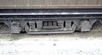 La foto muestra el acoplador automático central y las innecesarias cadenas laterales. La cañería de vacío está a la izquierda y allí está la palanca de accionamiento para extender el acoplador hacia la derecha. Las cadenas de seguridad pueden aparecer superfluas, pero el Señor David Eggleston comenta que él ha dado gracias para ellas cuando faltó el acoplador a los 40kph cerca El Maitén en octubre de 2000.