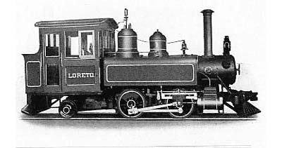 Hay unos datos de interés aquí. El tráfico de carbón ha incrementado hasta 33.000 toneladas métricas. El kilometraje de las máquinas, (dado las operaciones de máquinas solas hasta y desde la maestranza al punto medio) es igual a unos 700 viajes de ida y vuelta cada año. También este sugiere que la cantidad promedia de carbón era menos de 50 toneladas métricas cada viaje. El informe estadounidense dice que era cuatro viajes por día llevando 121 toneladas (¿cada uno?). Un estudio de las cifras enviadas al gobierno es relevando. El personal de ferrocarril variaba mucho entre 8 y 39 y hasta 96 en un año raro. ¿Es posible que alguien haya mal leído unas cifras? También se notan unos accidentes menores - diez descarrilamientos en 1924 y 1927 - un herido fatal por consecuencia de descarrilamiento en 1922. Parece que en la mayoría de los años ganancias resultaban, pero en 1916 y 1923 estaban gastos excepcionales de causa desconocida. La producción de carbón debía incrementar más en la Segunda Guerra Mundial cuando era imposible obtener carbón europeo de alta calidad. In la zona de Isla Riesco y Península Brunswick incremento por casi 200% hasta 1943. Pero los mercados para carbón fueron abolidos por el petróleo. Después de la guerra el fin llegó rápidamente. Primeramente se cortó la línea al empalme Talca/Colon, y después a la maestranza. En 1950 la línea y la mina estaban cerradas. Locomotoras y vagones En 1902 el ferrocarril nuevo compró locomotoras 0-4-2T del Baldwin Locomotive Works. La primera llegó en enero de 1902 como estaban completas las obras de construcción. Se explotaban dos al fin de aquel año. Por otro lado unos informes de los primeros años dicen que estaba una sola máquina, un coche y veintitrés vagones (12). Es probable que este indica que estaba solamente una locomotora en servicio. El catalogo de dibujos técnicos de la Baldwin Locomotive Company en la librería DeGolyer nota la máquina de 1901, ilustrada debajo como la No 1 de la línea, y la de 1906 como la No 2. Se muestra aquí un dibujo de una de las dos locomotoras originales, que se encuentra en un catálogo más moderna del Baldwin Locomotive Works. Eran 0-4-2T chicas, con cilindros 9 x 14 pulgadas (= 22,9 x 35,6cm) y peso cerca 28.000 libras (= 12.700kg) del tipo 6-11 1/3C del Baldwin Locomotive Works. Está máquina es nombrado claramente Loreto. El nombre de la otra es desconocido. Una de aquellas ha sido identificada como clase 6-11 1/3C Nº 47 de febrero de 1901 - lignito para combustible - trocha 1,0m - Baldwin, número de fábrica 18510 - pedida por el Señor Agustín Ross (13).