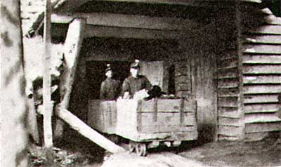 Mientras no se ve ninguna evidencia ferroviaria en la ilustración arriba, probablemente estaban carros mineros en la mina propia.