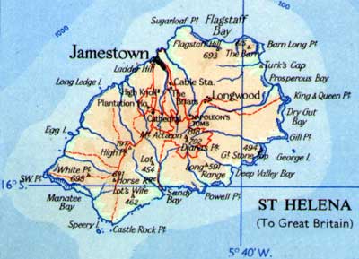 La isla Saint Helena tiene solo un pueblo principal, Jamestown. Este está en un hueco encerrado por precipicios, bajo la meseta donde están las chacras.