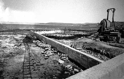 La próxima fotografía ilustra las obras para ganar tierra al sudoeste del rompeolas nuevo. Se usa la línea de trocha 75cm para transportar la tierra, más parece que la de 60cm era usada para trabajos más localizados, como el transporte del hormigón al muro rompeolas (2).
