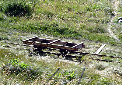 Un chasis de vagón sobre el pantano. Informó también Eljas Polho que «Hörle Torv (otra turbera sueca) ha vendido diez vagones y 2km de rieles a Chile». No se si también llegó a Río Rubens este material.